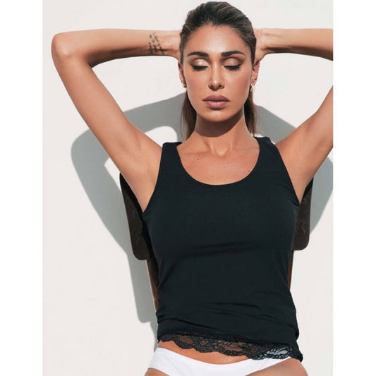 Canotta Donna Jadea 4328 spalla larga e spalla sottile in cotone elasticizzato inserti in pizzo