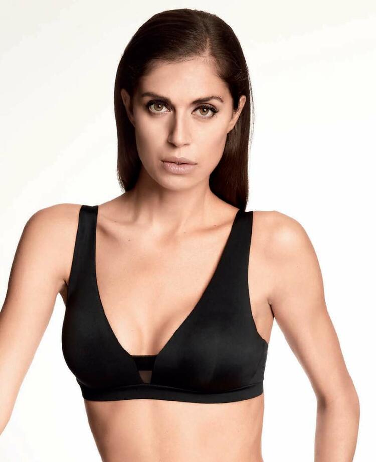 In microfibra con inserto in tulle al centro dei seni.